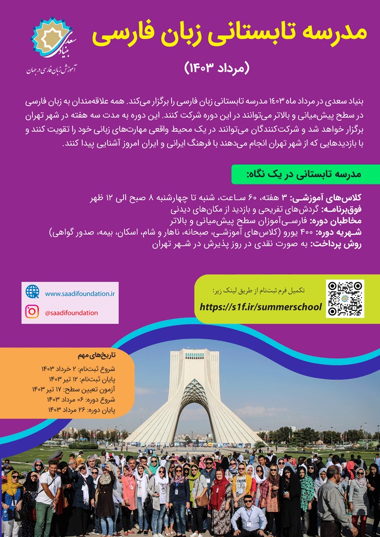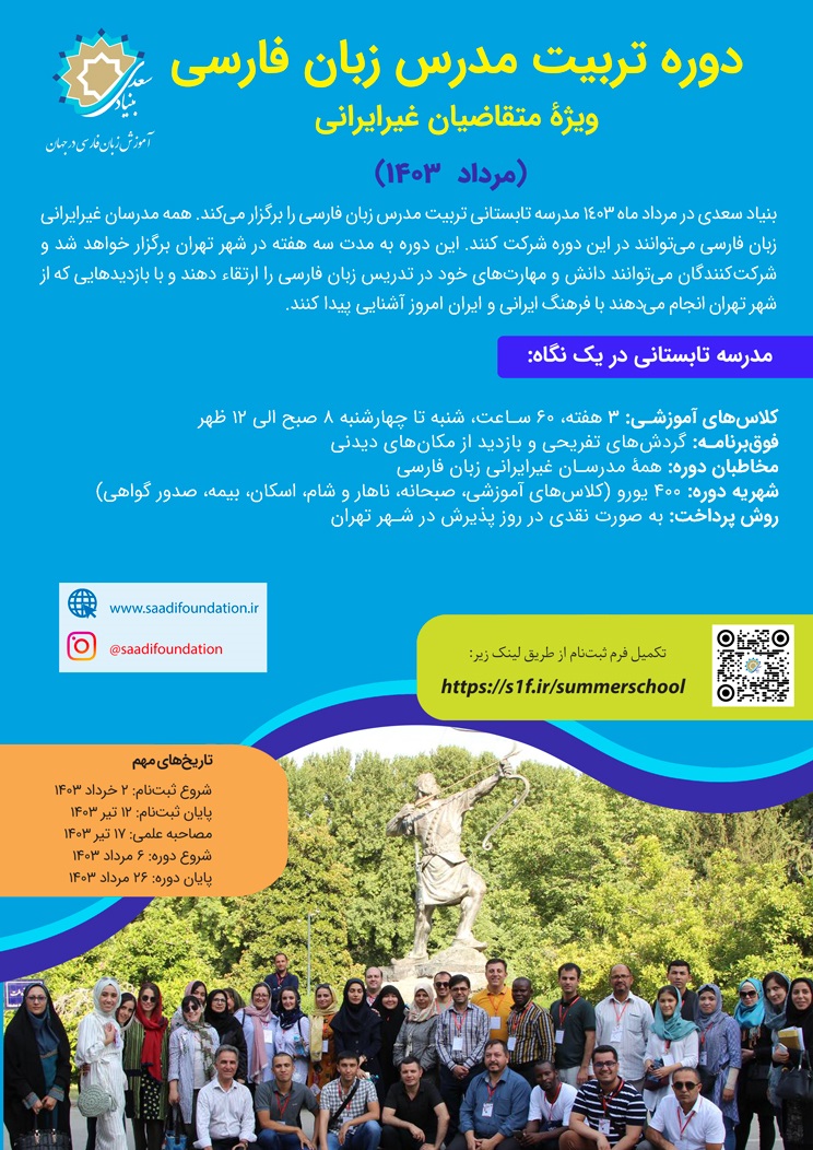 اطلاعیه آموزش زبان فارسی در مدرسه تابستانی بنیاد سعدی