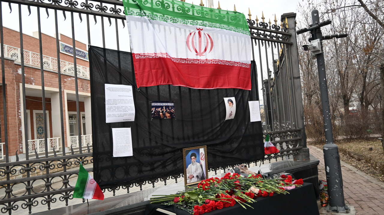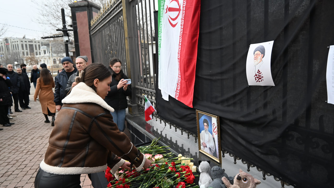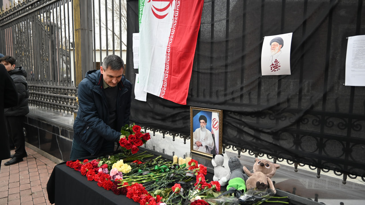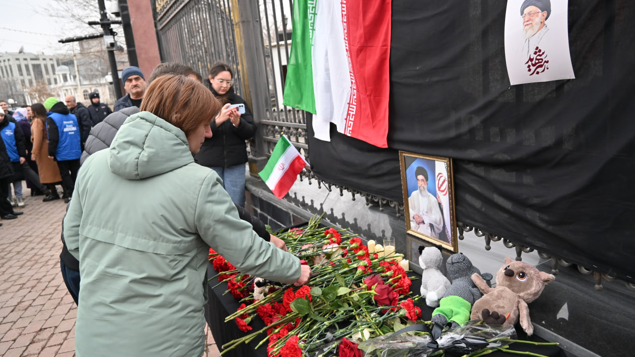 اهدای گل و ادای احترام مردم و نمایندگان سازمانهای دولتی و مردمنهاد استان آستراخان در مقابل سرکنسولگری جمهوری اسلامی ایران